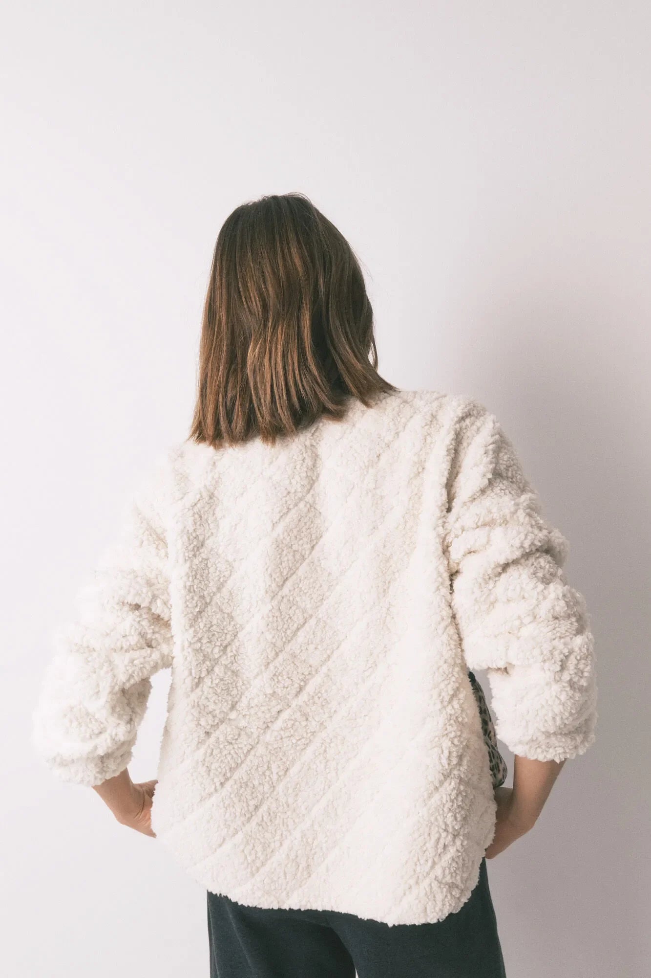 Reversible short jacket with a leopard print on one side and plain on the other with animal print details. It's made with a double fabric: one in a super-soft puffer quality and the other in embossed faux shearling fabric. It's super warm and pleasant to the touch. Wear it with pyjamas from the collection and maintain your style also at home or in your street looks.